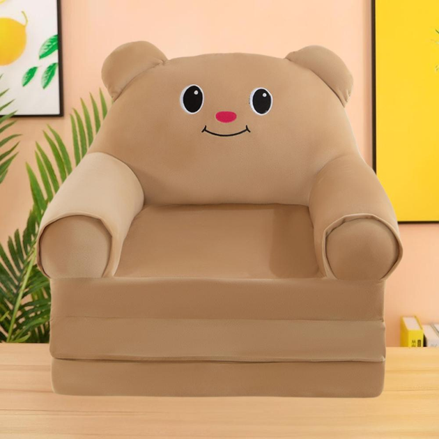 М'яке дитяче крісло трансформер плюшевий диванчик іграшка для дітей ведмедик бежевий (280062)