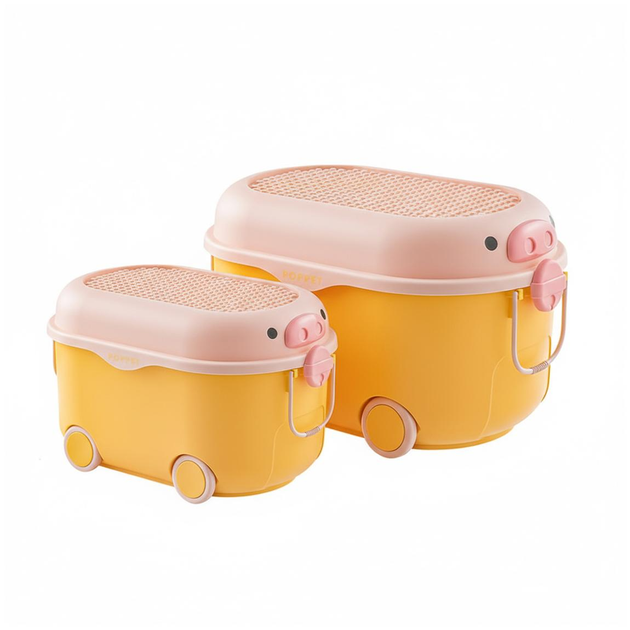 Комплект ящиків для зберігання іграшок POPPET Свинка Йеллоу, на колесах, великий + середній (PP-002Y-LM)
