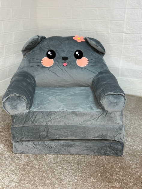 Дитяче м'яке плюшеве крісло-диван трансформер Кіт із великими очима 50 см