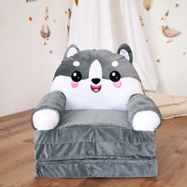 М'яке дитяче крісло ліжко Хаскі лежанка розкладне плюшеве з подушками інтер'єрний диван трансформер для дітей у кімнату