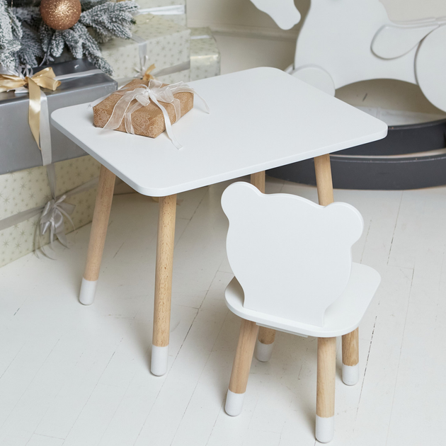 Столик прямокутний та стілець білий ведмежа 277712
