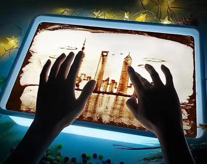 Стіл для малювання піском з LED підсвічуванням для Арт терапії, мережа, у комплекті пісок, блакитний колір, 1 кг