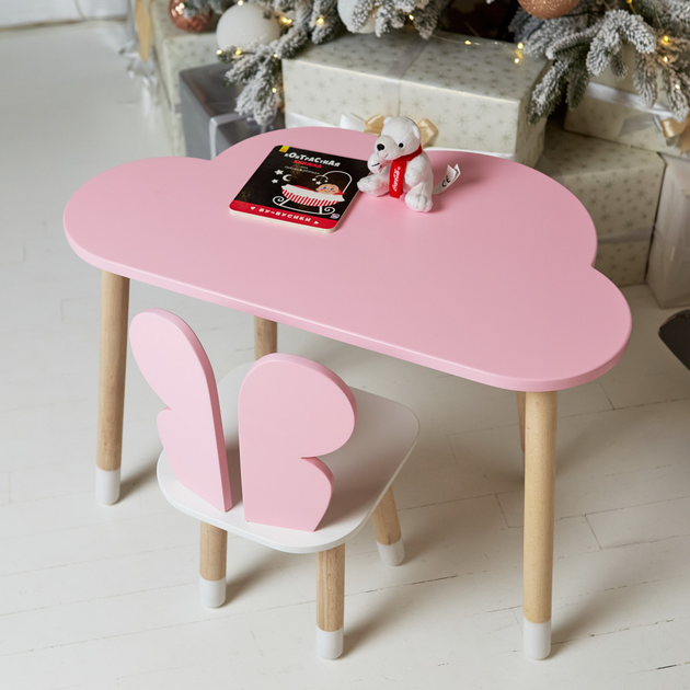 Стіл хмарка і стільчик бабочка , розовата з білим 992520