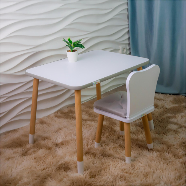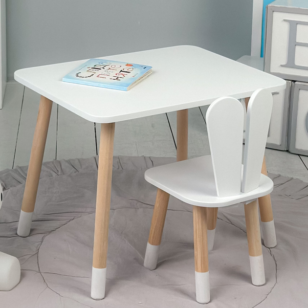 Дитячий прямокутний столик 46х60х45 і стільчик вушка зайки 26.5х26х25, стіл та стілець до 7 років, білий