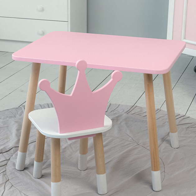 Дитячий прямокутний стіл і стільчик корона з білим сидінням. Столик рожевий дитячий