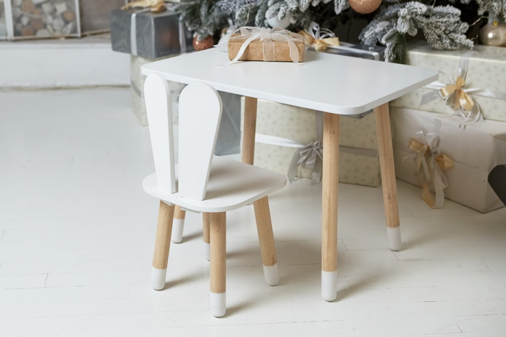 Столик дитячий прямокутний зі стільцем Зайчик 46х60х45 см Білий, для малювання, розвитку, ігри та творчості, дерево. (376512