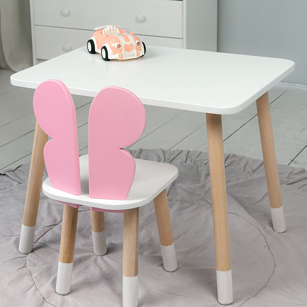 Прямокутний столик 46х60х45 і стільчик дитячий метелик 26х26х24, набір меблів стіл та стілець, білий з рожевим