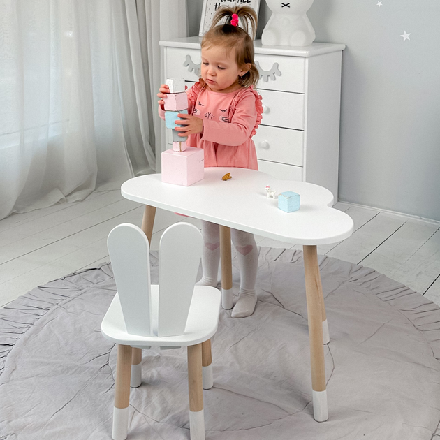 Дитячий столик хмарка і стільчик білий зайчик. Для гри, малювання, навчання!