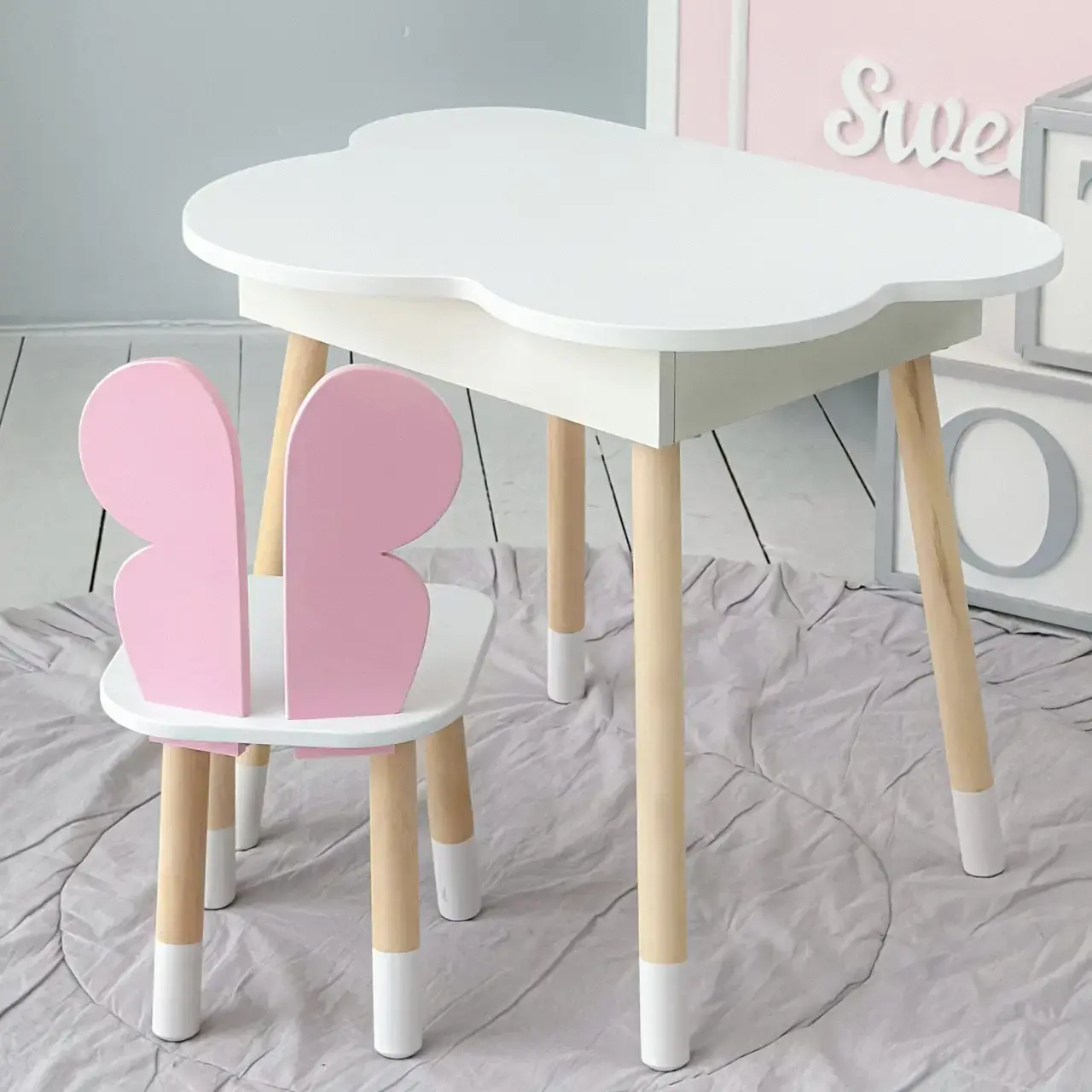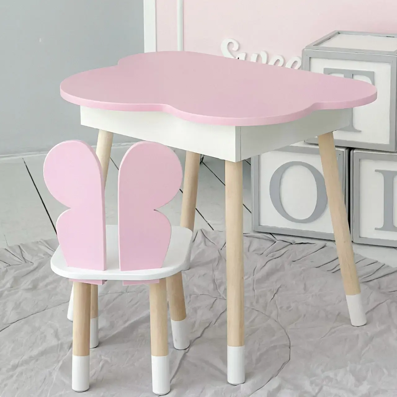 Дитячий стіл Хмара з нішою та стільчиком Метелик (Рожевий)