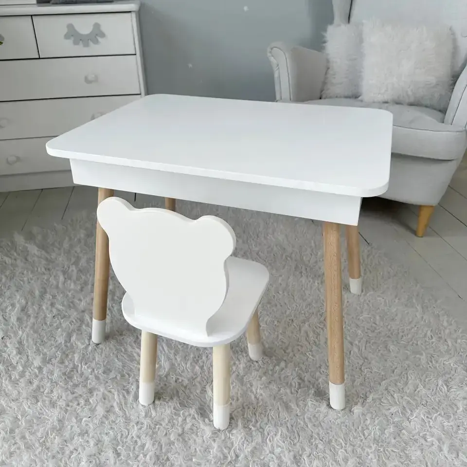 Дитячий столик з ящиком для олівців + стільчик Ведмедик (Білий)