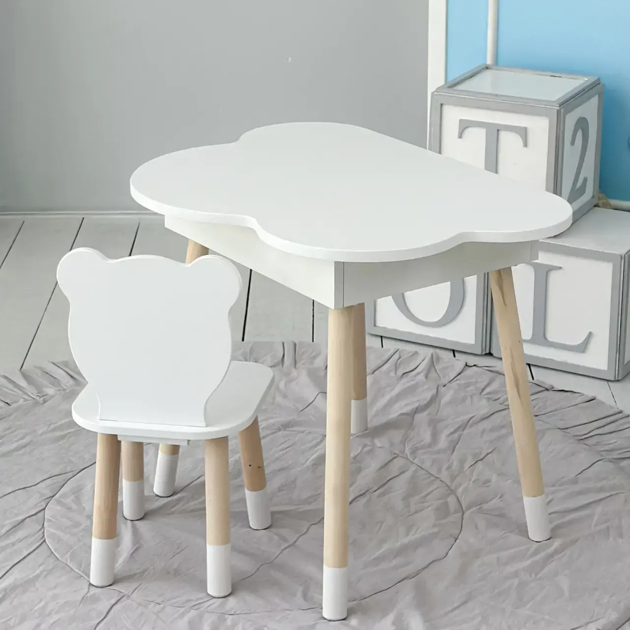 Дитячий столик Хмара з нішою та стільчиком Ведмедик (Білий)