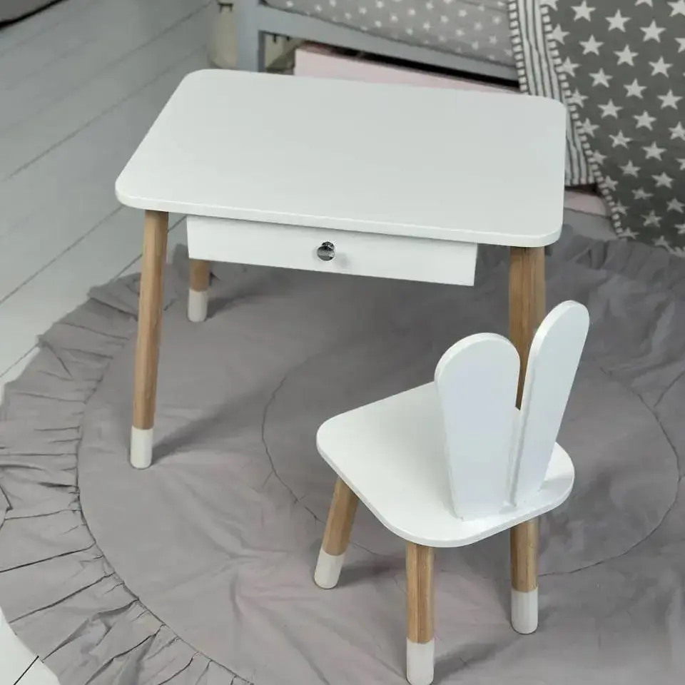 Дитячий столик зі стільцем Зайчик та ящиком для олівців та розмальовок (Білий)