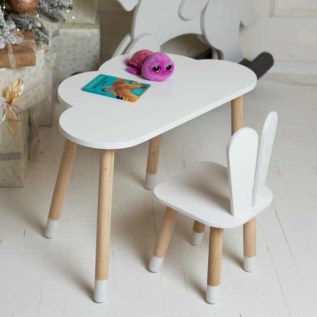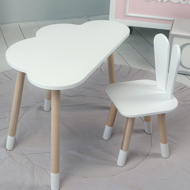 Дитячий столик хмарка і стільчик білий зайчик для гри малювання і навчання LalaKids 700 мм
