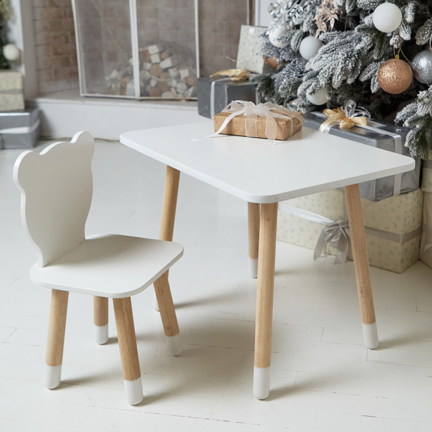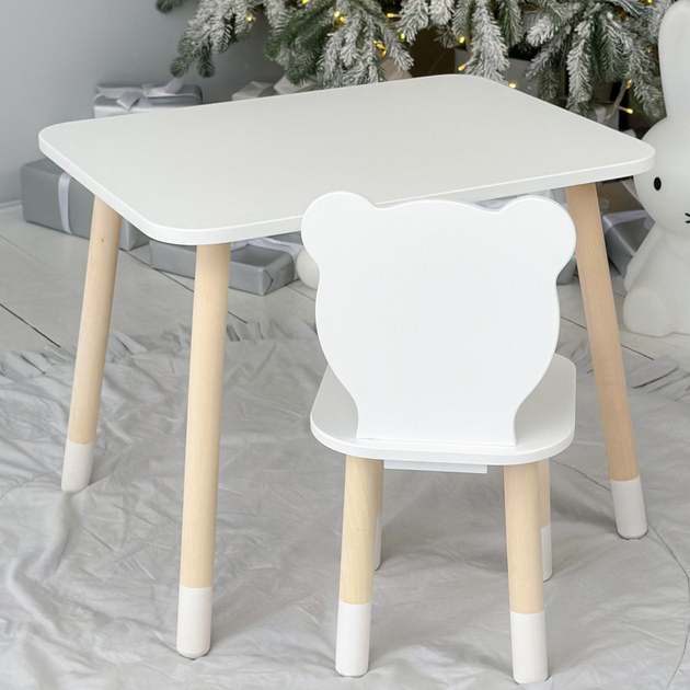Дитячий прямокутний столик 46х60х45 і стільчик ведмідь 26.5х26х25, стіл та стілець від 1 року, білий