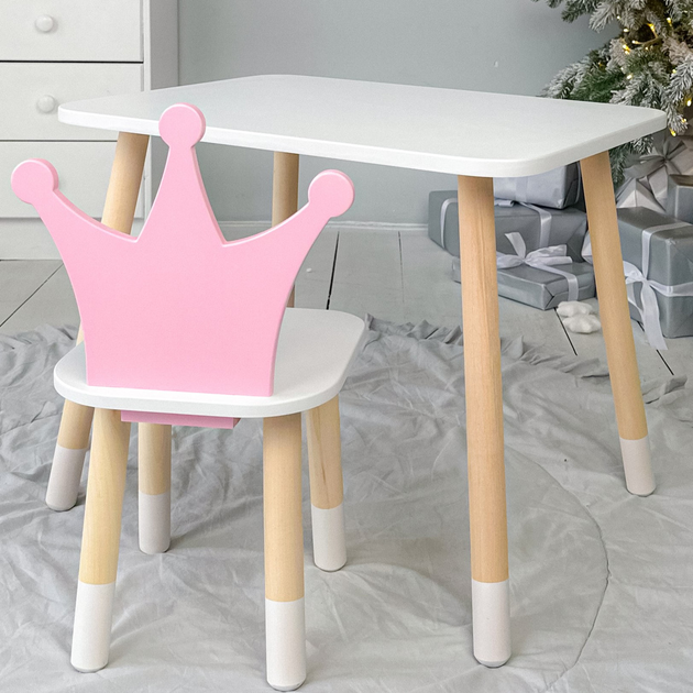 Прямокутний стіл і стільчик дитячий біла корона. Столик для уроків, ігор, їжі
