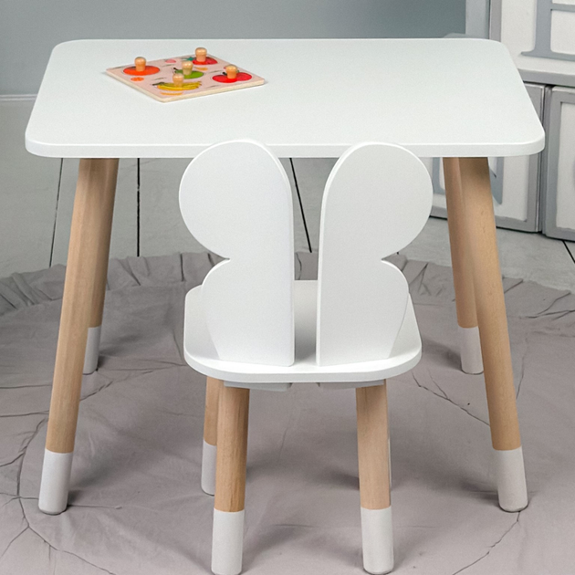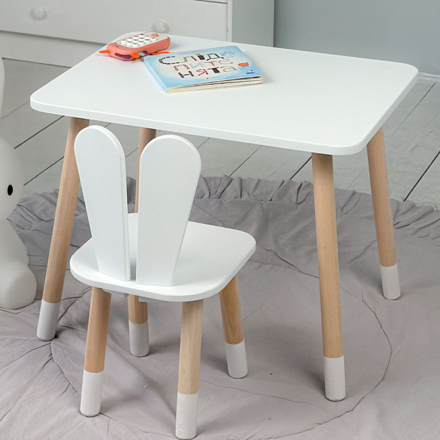 Зручний столик 46х60х45 та стільчик з вушками зайчика 26.5х26х25 в дитячу кімнату, білий