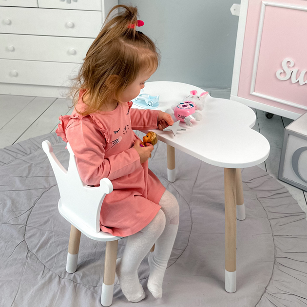 Стіл хмарка і стільчик дитячий біла корона. Столик для занять, ігор, їжі