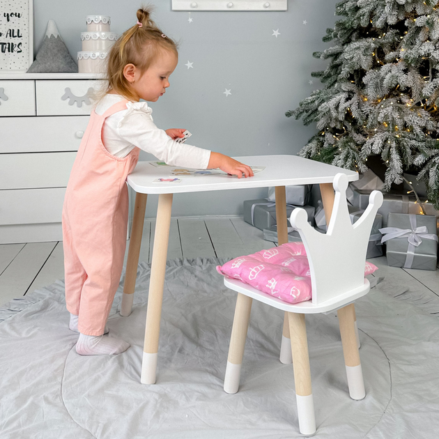 Прямокутний стіл і стільчик дитячий біла корона. Столик для уроків, ігор, їжі