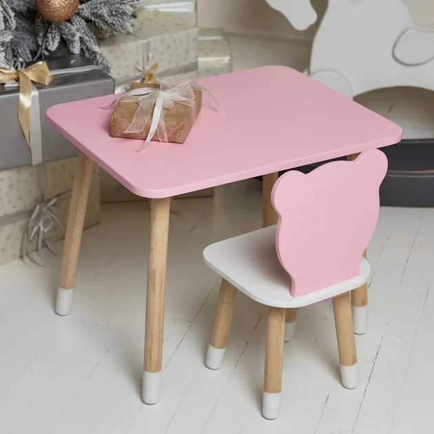 Столик дитячий та стільчик No Brand Ведмедик 46х60х45 см Рожевий (2031836678)