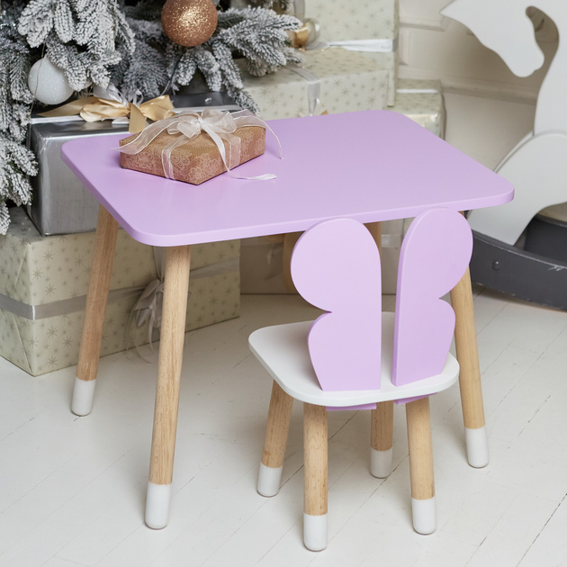Столик прямокутний 46х45х60 зі стільчиком "метелик" 26.5х26х25 для малювання та ігор, фіолетовий колір