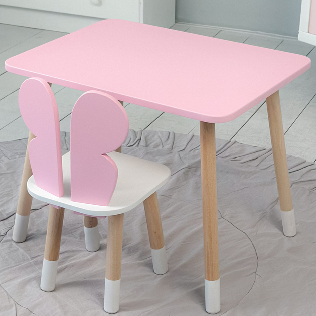 Дитячий столик прямокутний 46х60х45 і стільчик метелик 26.5х26х25, стіл та стілець для дітей, рожевий з білим