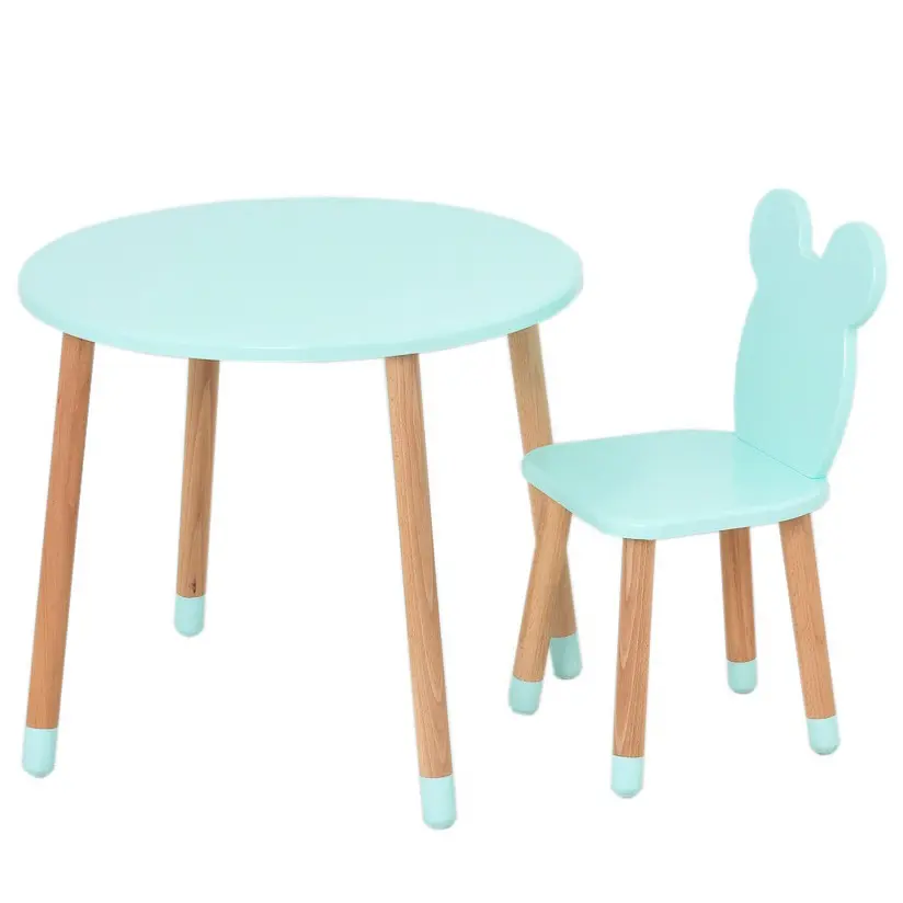 Столик зі стільцем "Ведмедик" 07-025B-ROUND круглий, бірюзовий