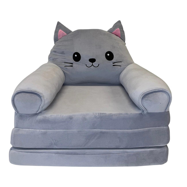 М'яке крісло для дітей у вигляді звірятка "Котик", дитяче плюшеве крісло-трансформер довжиною 120 см на 3 подушки