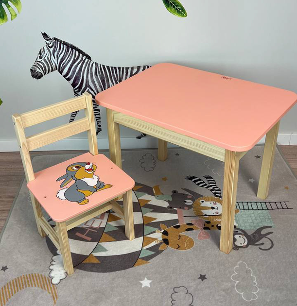 Столик з ящиком і стільчик Зайченя, Мася, персиковий 5431, 4031