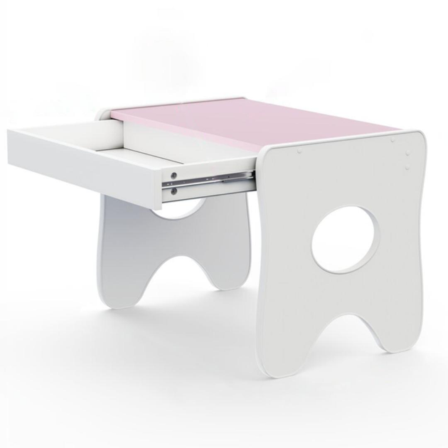 Зручний столик у дитячу кімнату , дитячий ігральний стіл із ящиком, білий з рожевим (TD-28564)