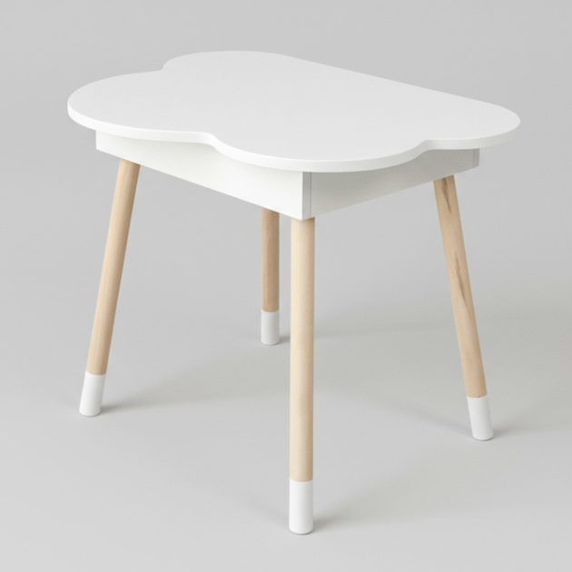 Зручний столик в дитячу кімнату 704551, дитячий гральний стіл з шухлядкою, білий з деревом (TD-28867)