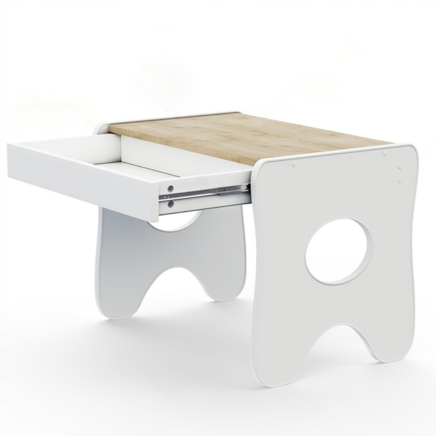 Зручний столик в дитячу кімнату, дитячий гральний стіл з шухлядкою, білий з деревом
