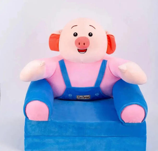 Дитяче м’яке крісло-трансформер дитяче плюшеве крісло складне ліжечко зручне для дитини розкладне безкаркасне 3в1 Свинка