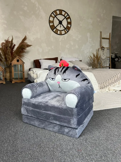 Дитяче м’яке крісло-трансформер дитяче плюшеве крісло складне ліжечко зручне для дитини розкладне безкаркасне 3в1 Кіт Імпера