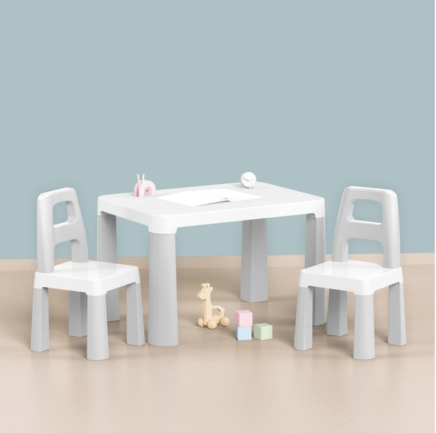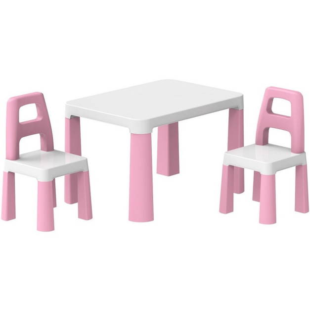 Стіл зі стільчиками для дітей, пластиковий набір рожево-білий, для ігор, навчання та малювання вдома Технок
