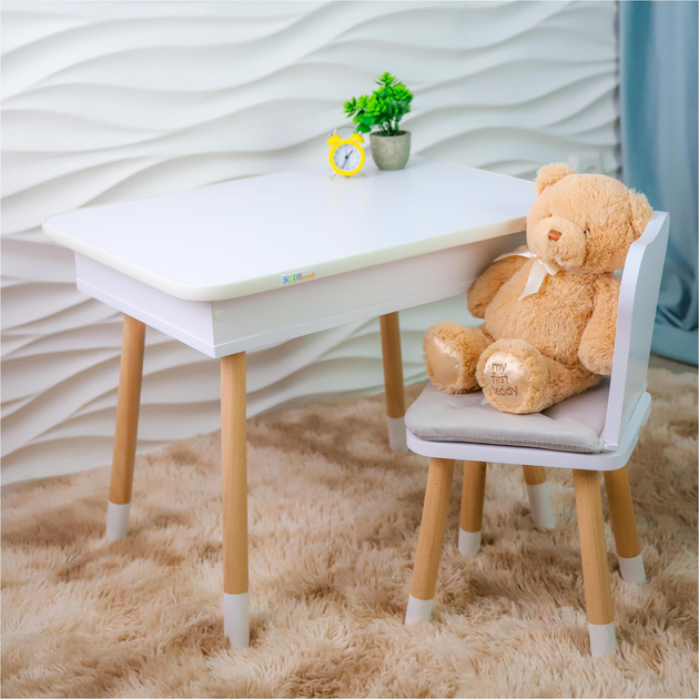 Дитячий стіл з пеналом + стілець з м'якою подушкою для сидіння Білий