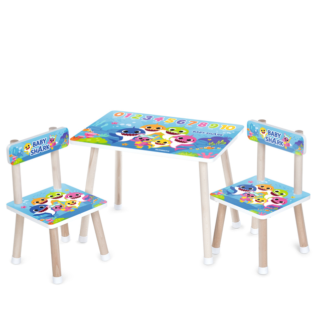 Дитячий столик Bambi M 501-20 «Baby Shark» (з двома стільцями, ДСП, стіл: 40*60 см, 44,5 см, сидіння: 28,5*28,5 см, 25 см, с