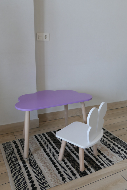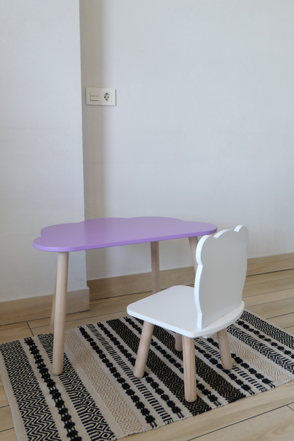 Комплект стіл та стілець дитячий ChildWood - Set Стіл бузковий Хмаринка + стілець білий Мишка (Фанера)