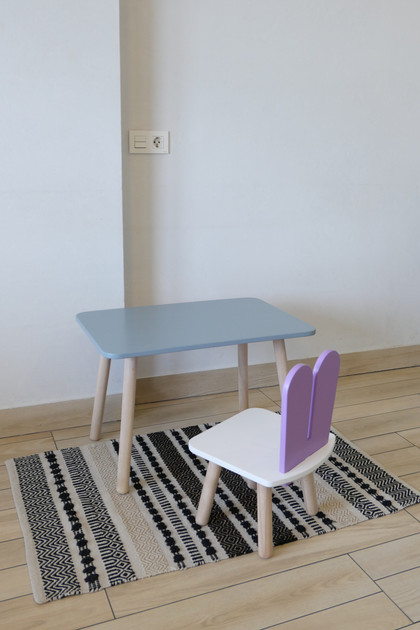 Комплект стіл та стілець дитячий ChildWood - Set Стіл сірий прямокутний + стілець білий зайчик (Фанера)