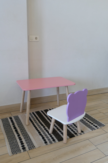 Комплект стіл та стул дитячий ChildWood - Set Стіл розовий прямокутний + стілець білий бузковий Медведик (Фанера)