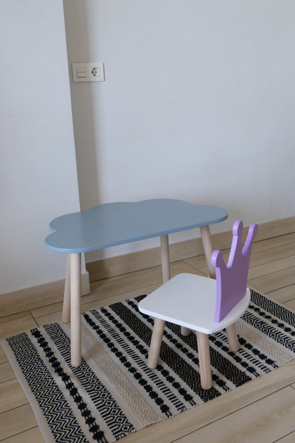Комплект стіл та стілець дитячий ChildWood - Set Стіл сірий хмаринка + стілець білий бузковий Корона (Фанера)