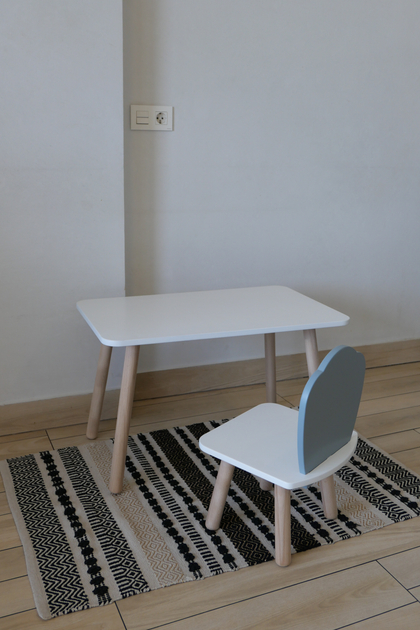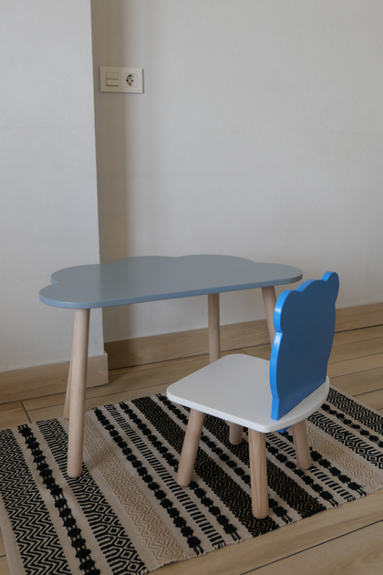 Комплект стіл та стілець дитячий ChildWood - Set Стіл сірий хмаринка + стілець білий блакитний Мишка (Фанера)
