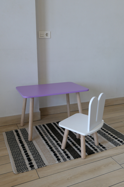 Комплект стіл та стілець дитячий ChildWood - Set Стіл бузковий прямокутний + стілець білий Зайчик (Фанера)