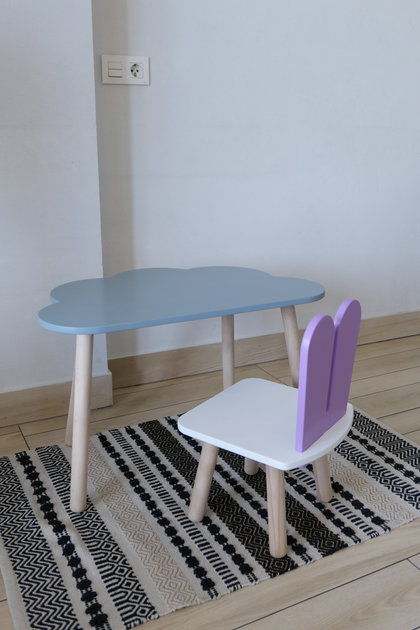 Комплект стіл та стілець дитячий ChildWood - Set Стіл сірий хмаринка + стілець білий бузковий Зайчик (Фанера)