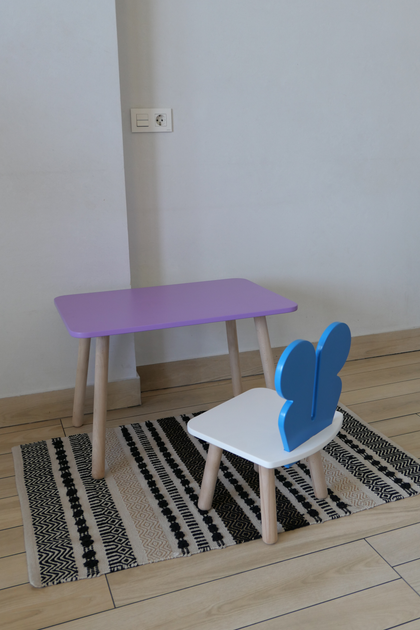 Комплект стіл та стілець дитячий ChildWood - Set Стіл бузковий прямокутний + стілець білий блакитний Метелик (Фанера)