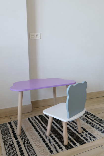 Комплект стіл та стілець дитячий ChildWood - Set Стіл бузковий хмаринка + стілець білий сірий Мишка (Фанера)