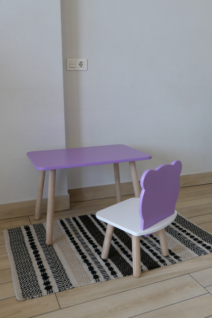 Комплект стіл та стілець дитячий ChildWood - Set Стіл бузковий прямокутний + стілець білий бузковий Медведик (Фанера)
