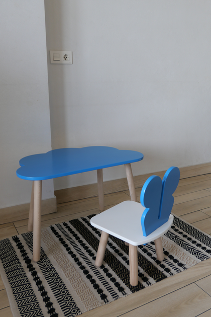 Комплект стіл та стілець дитячий ChildWood - Set Стіл блакитний хмаринка + стілець білий блакитний Метелик (Фанера)