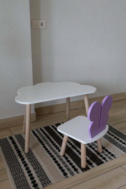 Комплект стіл та стілець дитячий ChildWood - Set Стіл білий хмарина + стілець білий бузковий Метелик (Фанера)