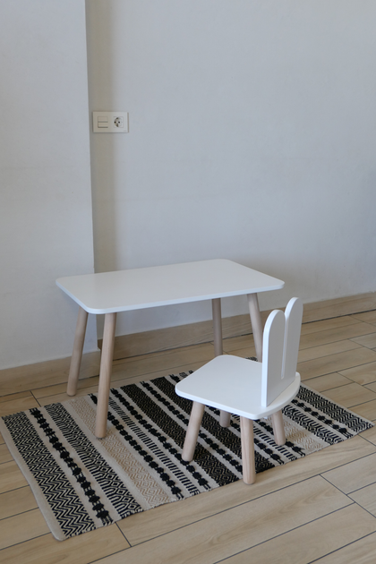 Комплект стіл та стілець дитячий ChildWood - Set Стіл білий прямокутний + стілець білий Зайчик (Фанера)