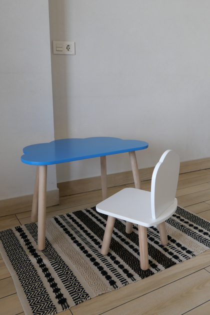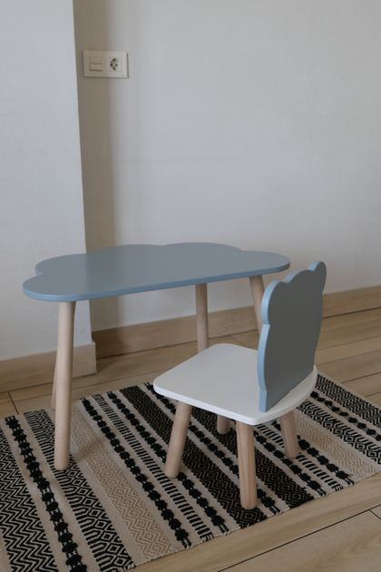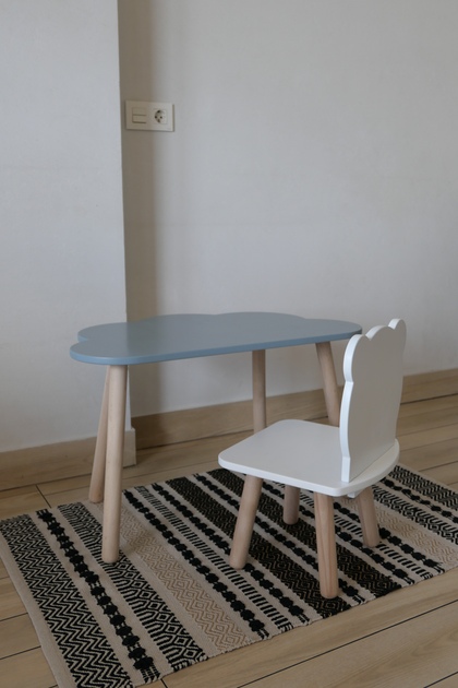 Комплект стіл та стілець дитячий ChildWood - Set Стіл блакитний хмаринка + стілець білий Мушля (Фанера)